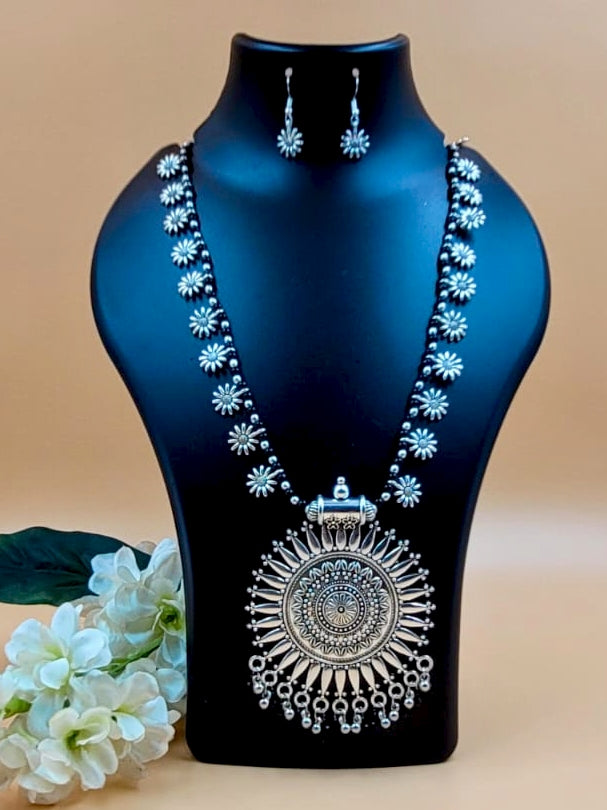 Floral Design Long Chain Set with Big Pendant and Ghungroo Laced.